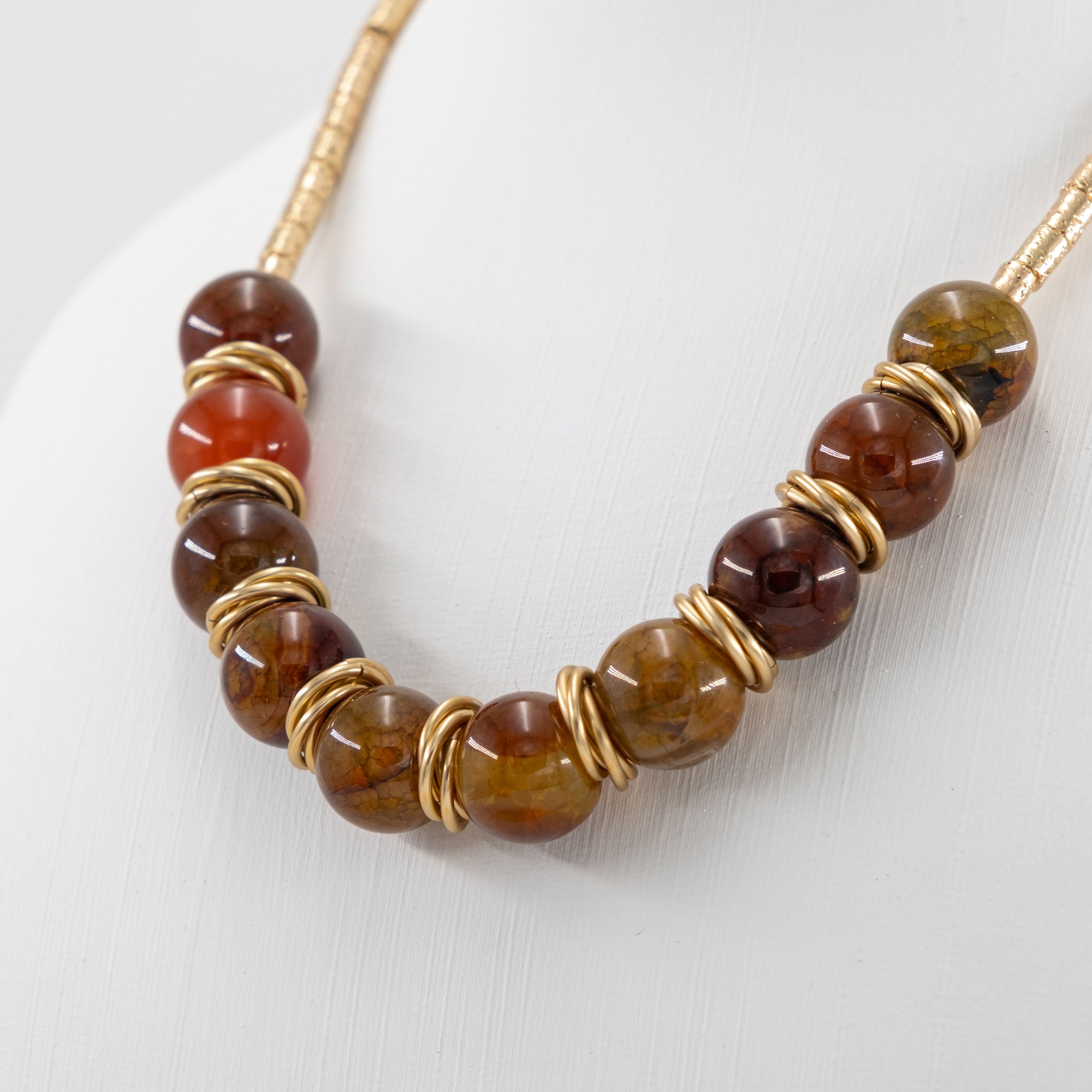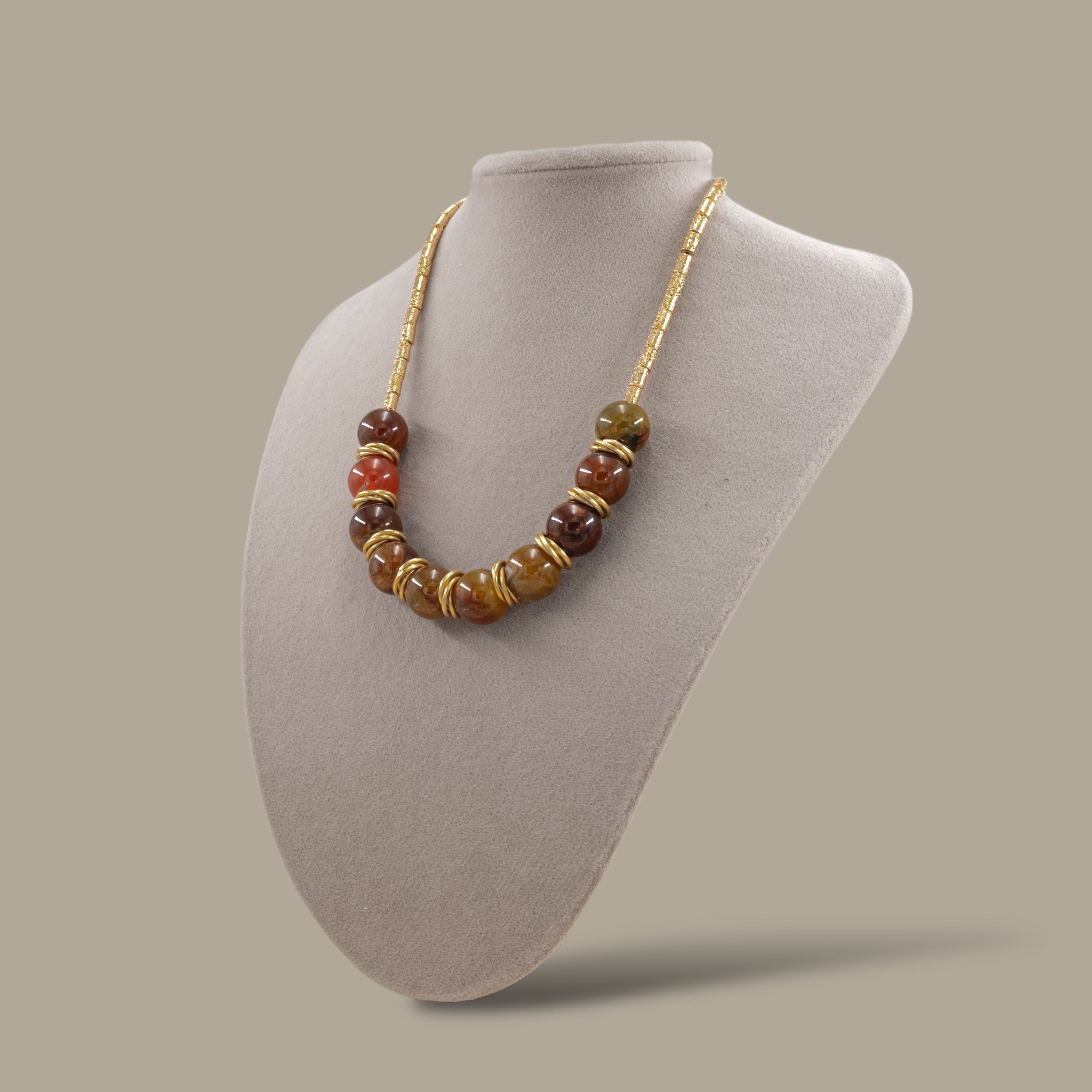 Gold Lav Taşı ve Akik Doğal Taş Detaylı Kolye