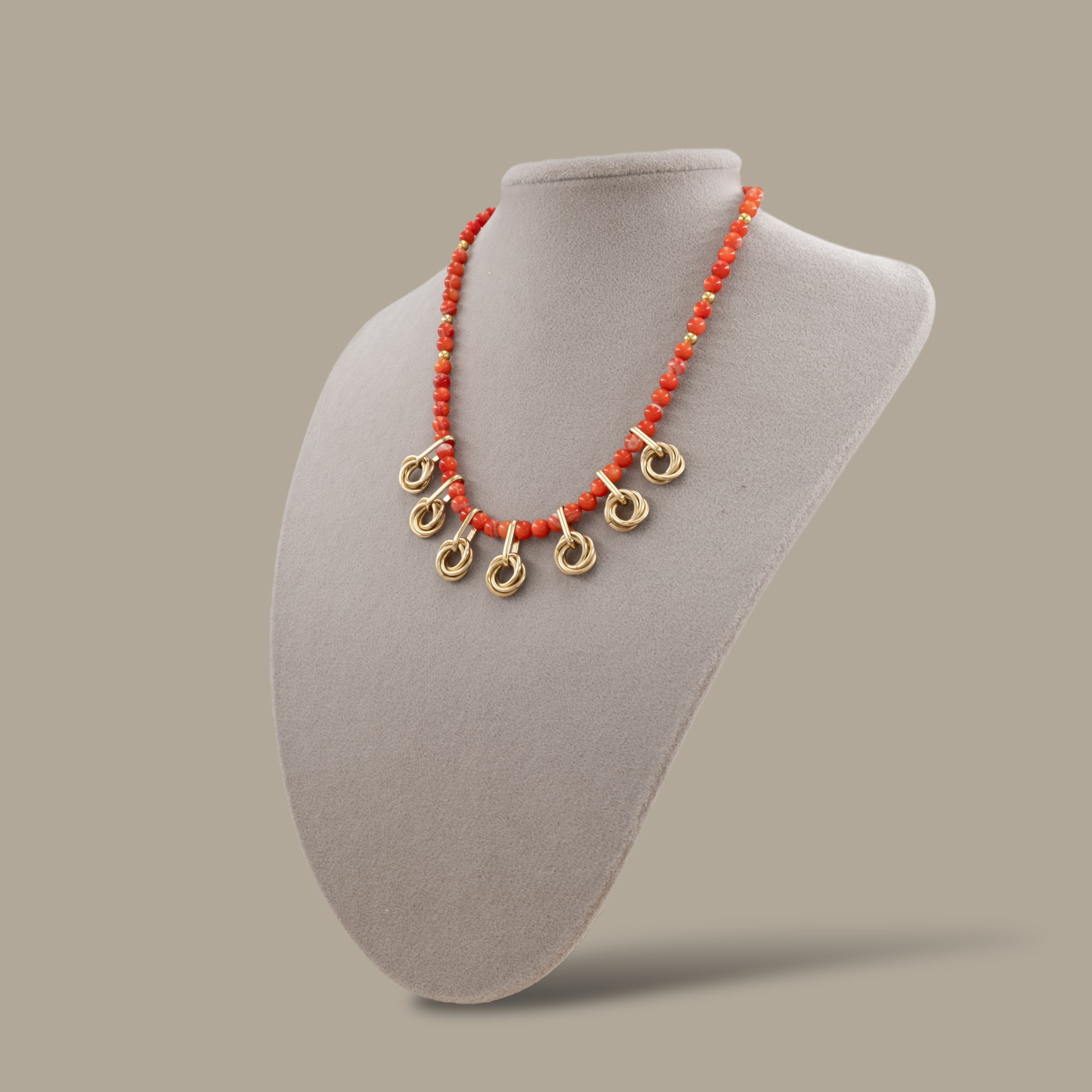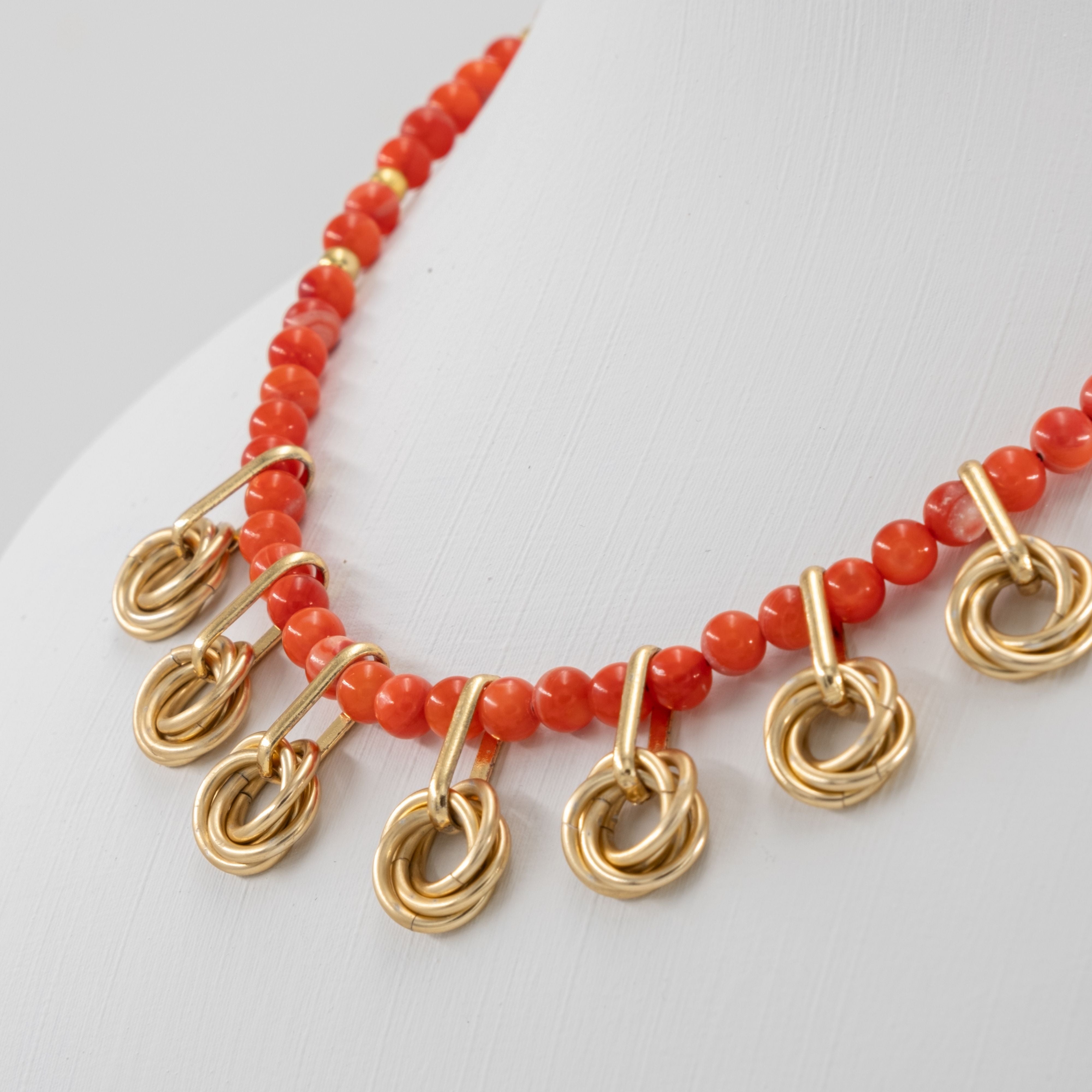 Malzeme: Mercan rengi sedef taşlar, gold örgü zırh
