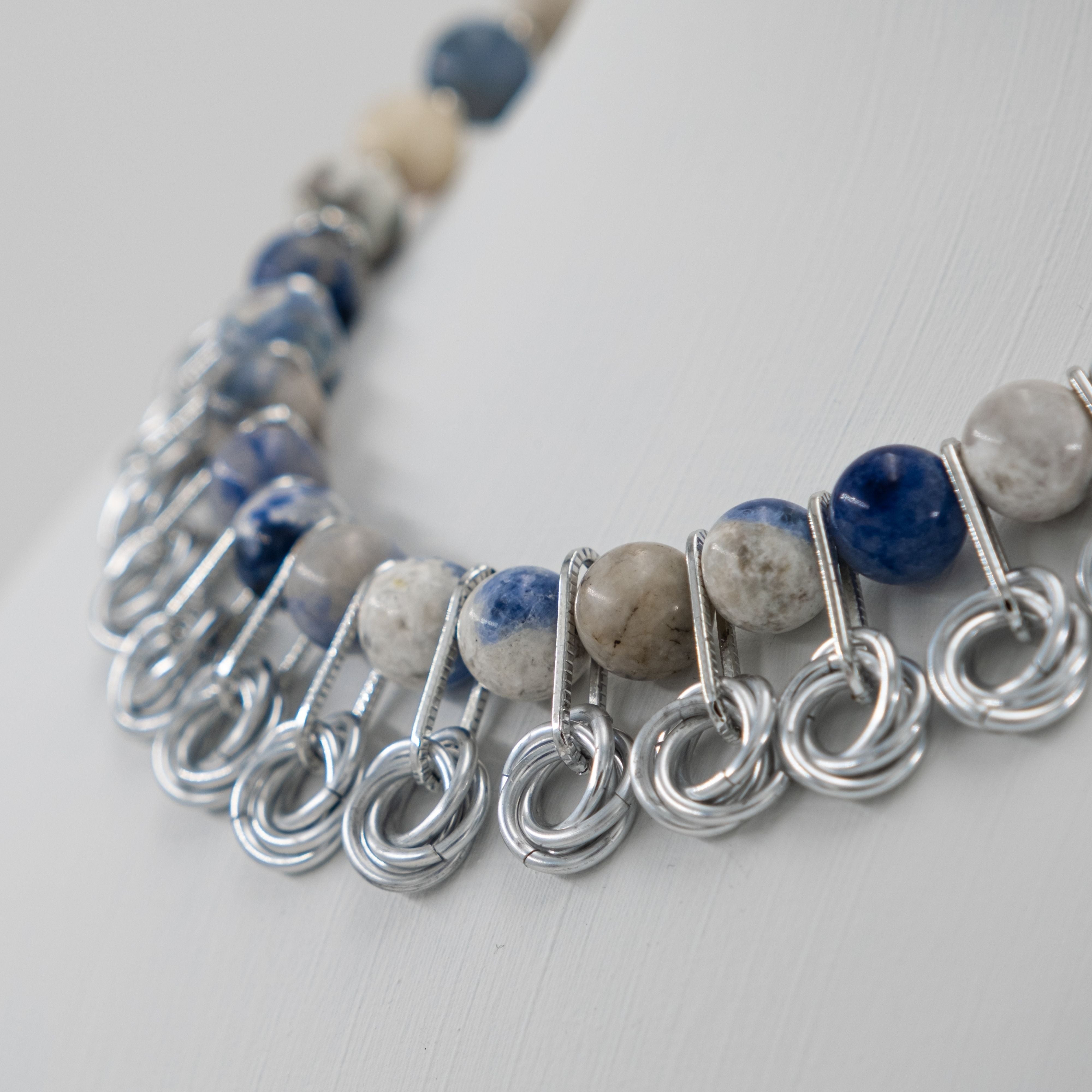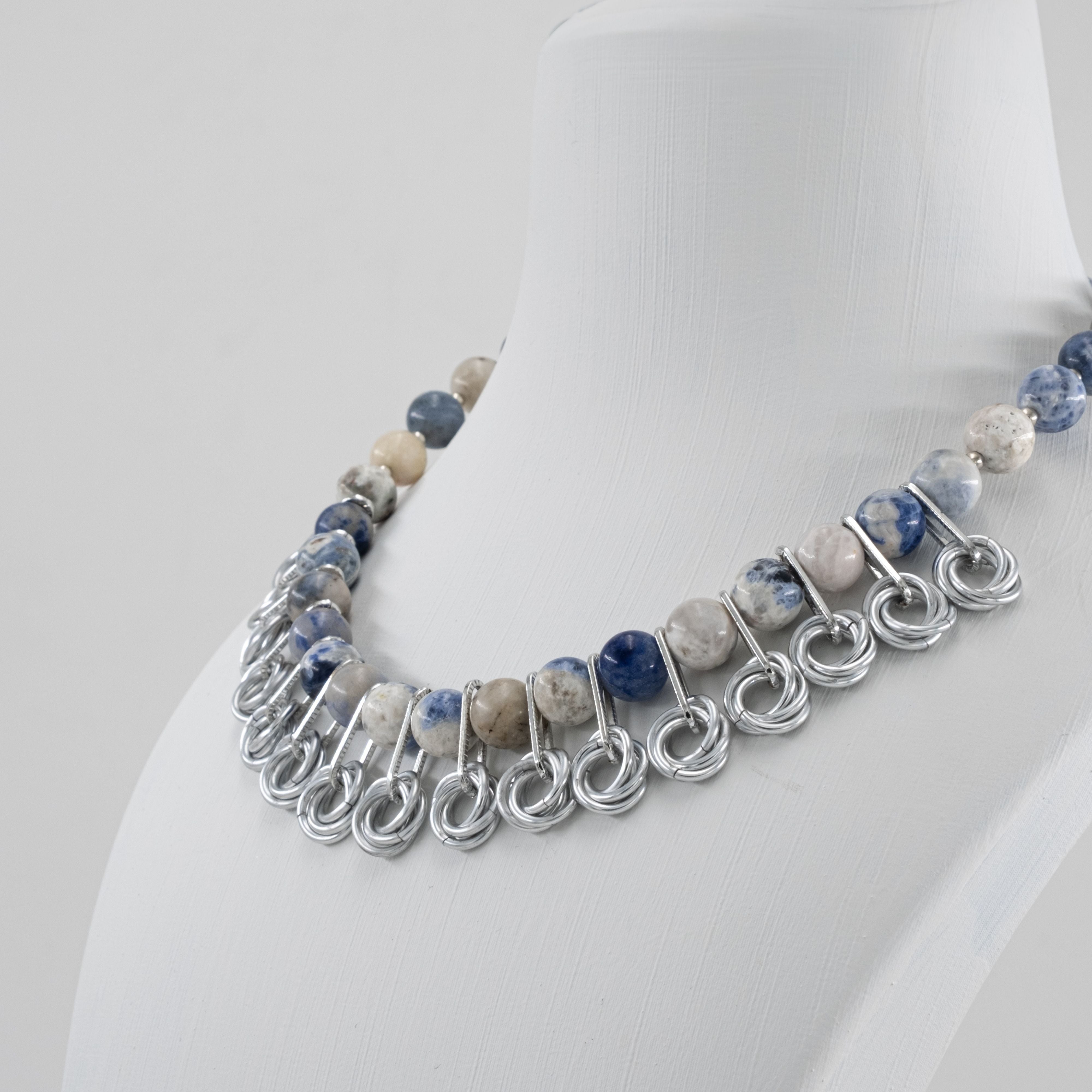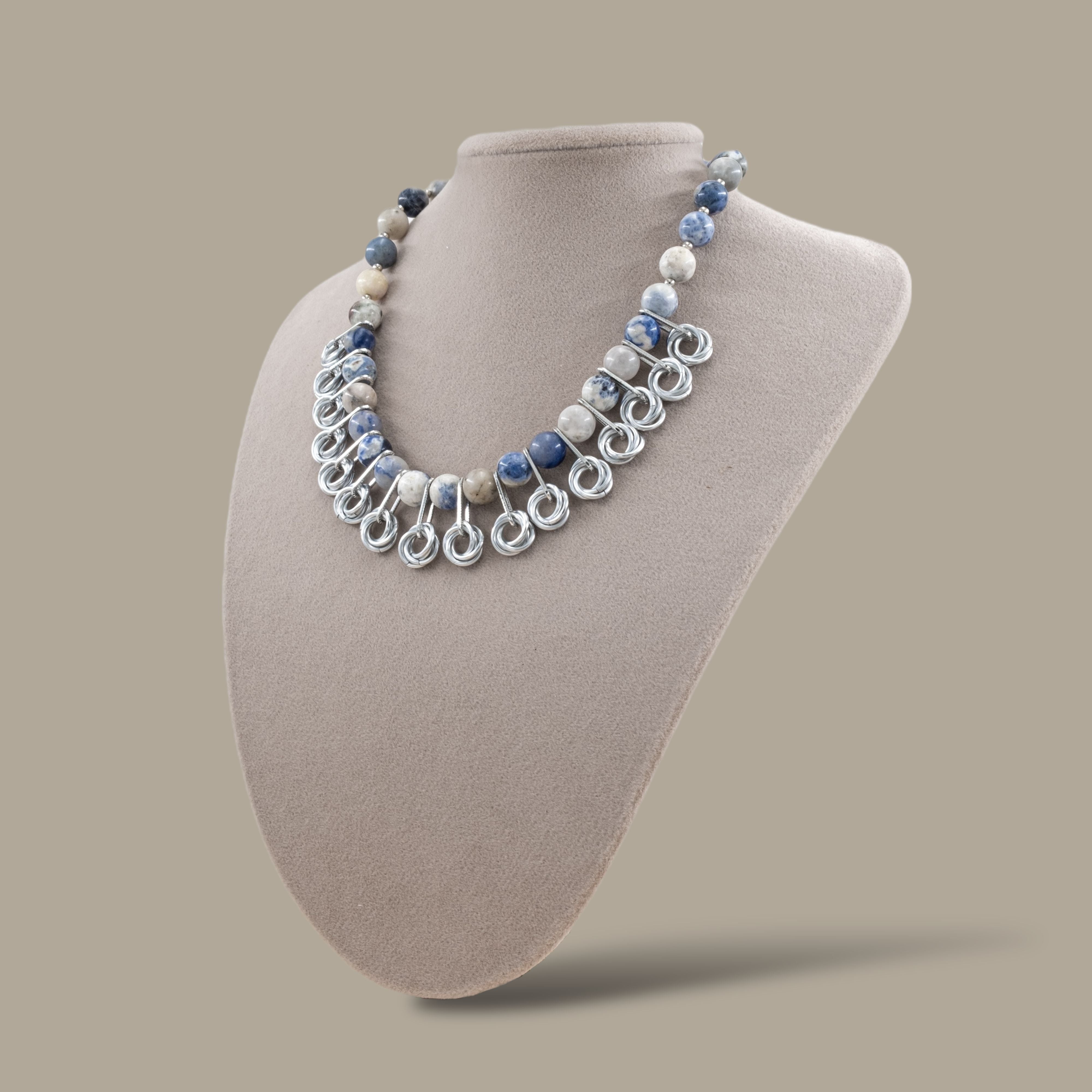 Sodalit ve Örgü Zırh Detaylı Zamansız Kolye